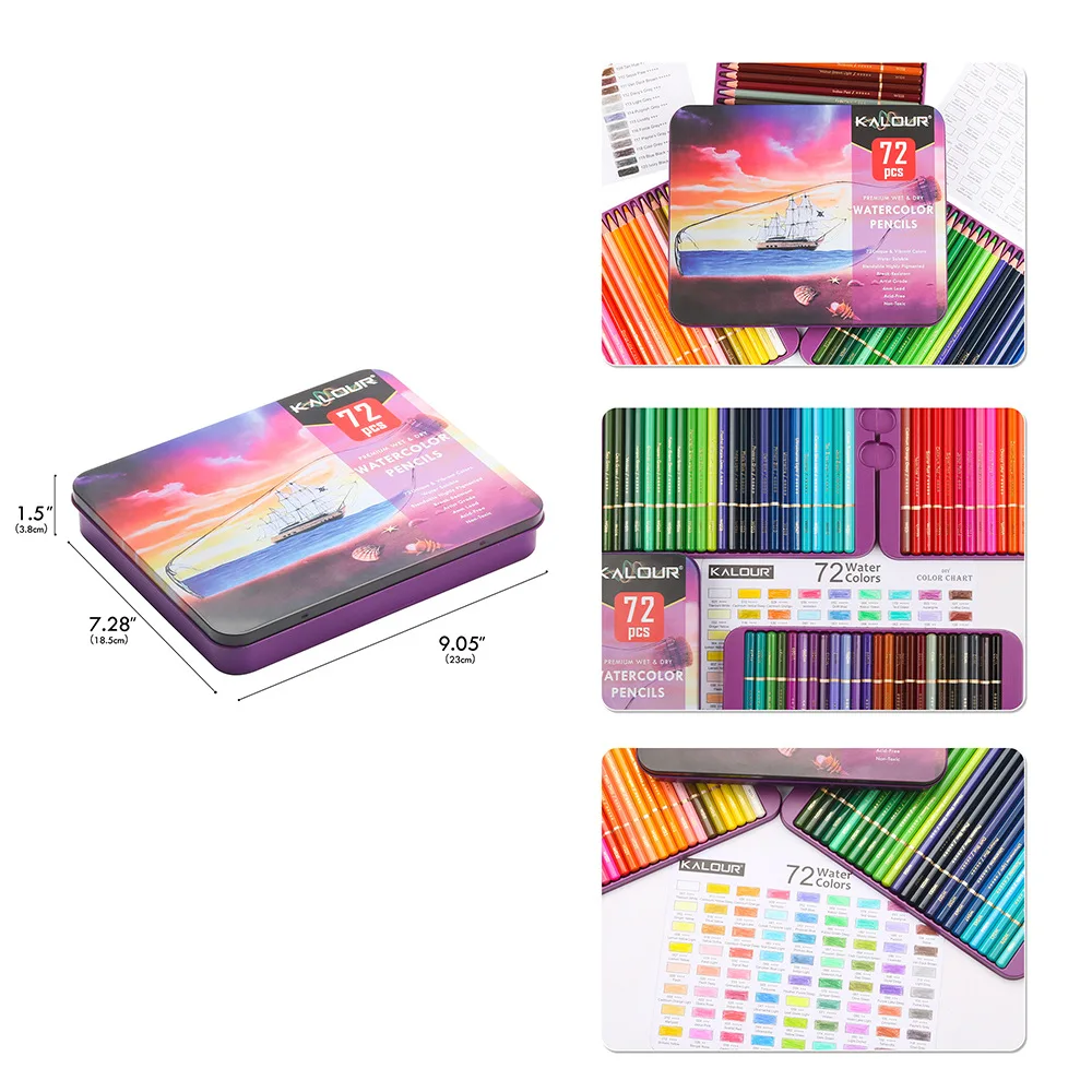 72 Cor Lápis Kalour Cor Pen Set Solúvel em água Cor chumbo Profissional Art Brush Mapeamento Lápis de cor pintados à mão