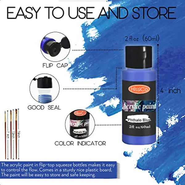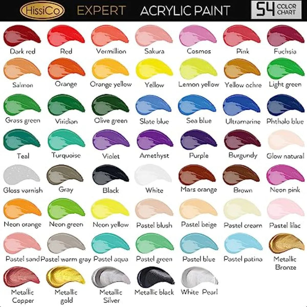 Acrylic Paint Set 66 PCS of 54 Colors 2fl oz 60ml Bottles with12 BrushesNon Toxic 54 Colors Acrylic Paint No Fading Rich Pigmen