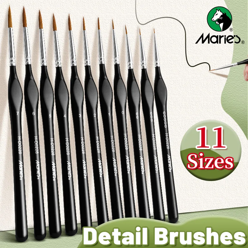 AOOKMIYA 11pcs Marie's Fine Paint Brush Set, Miniature Detail,Nylon Hair Kit for Acrylic,Watercolor,Craft,Models,Mini Figure,Rock