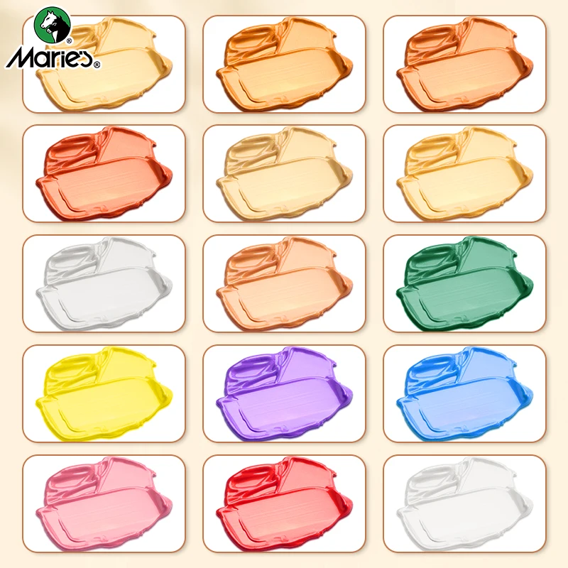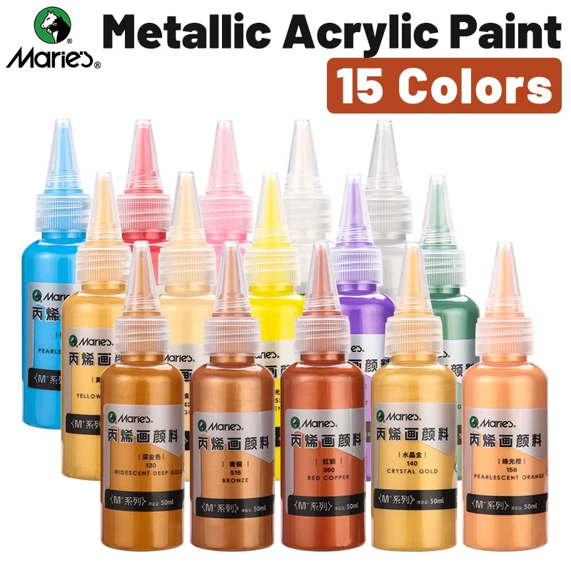 AOOKMIYA 22pcs Marie's Metallic Acrylic Paint Set,15 Colors & 7pcs Paintbrushes,Rich Iridescent Pearlescent Pigments for DIY,Rock,Glass