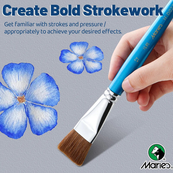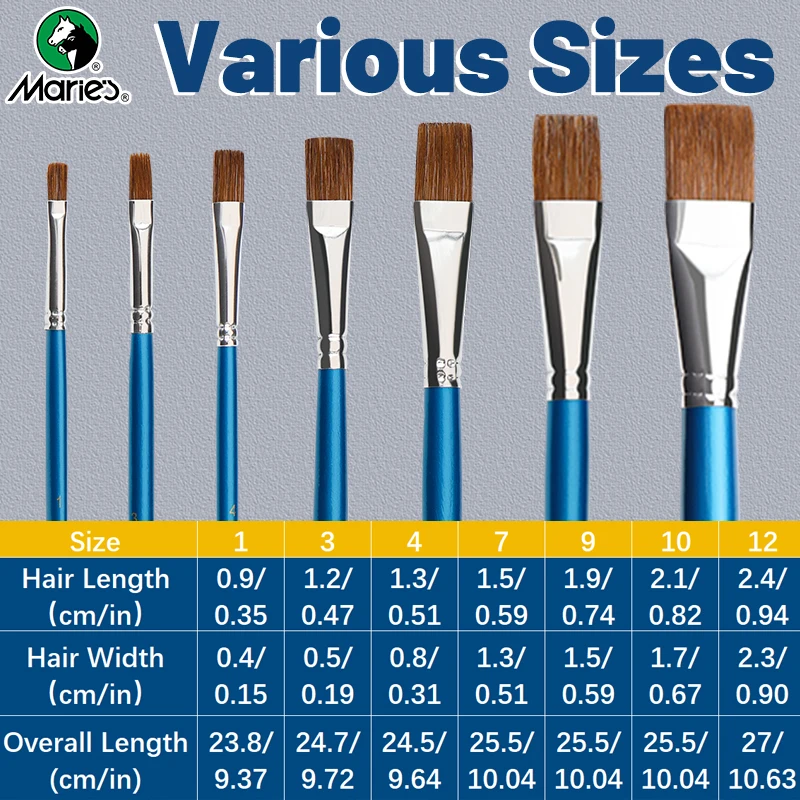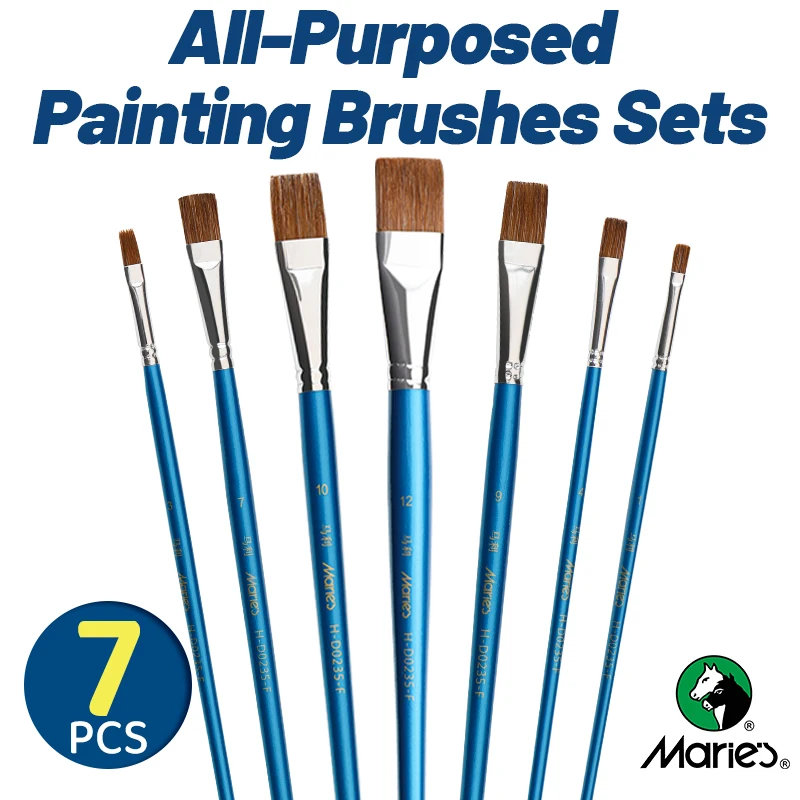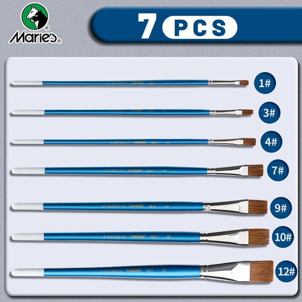 AOOKMIYA Marie's 7pcs Flat Paint Brushes Set with Wolf Hair & Long Handle for Oil, Acrylic,Gouache,Watercolor,Crafts,Models,Figures,Eggs
