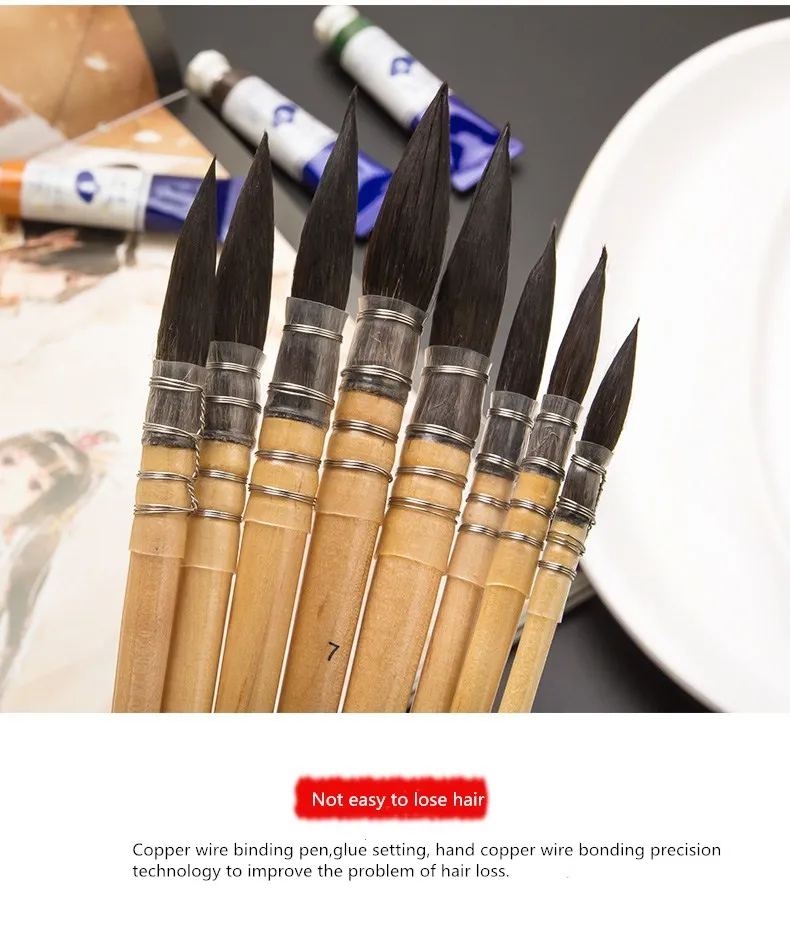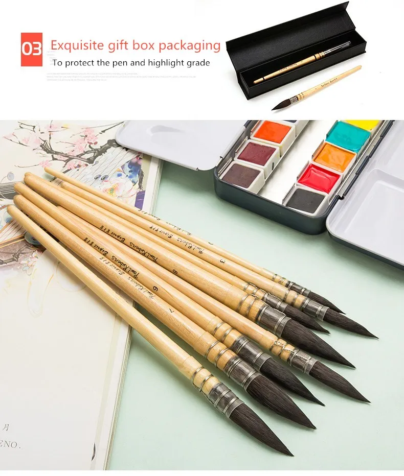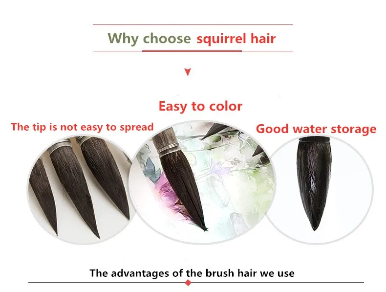 ► Pure Squirrel Hair Brush: Adopted exceptionally soft and absorbent squirrel hair, so that the brush can hold a large amounts of water and the brush tip can hold paint exceptionally well. It doesn't leave hair tracks while brushing, ideal for wash and mop techniques.