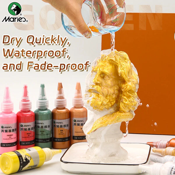 AOOKMIYA 5pcs Marie's Metallic Acrylic Paint Set, Rich Colorful Pearlescent Pigments for Gloss Shimmer Craft, DIY, Rock Design