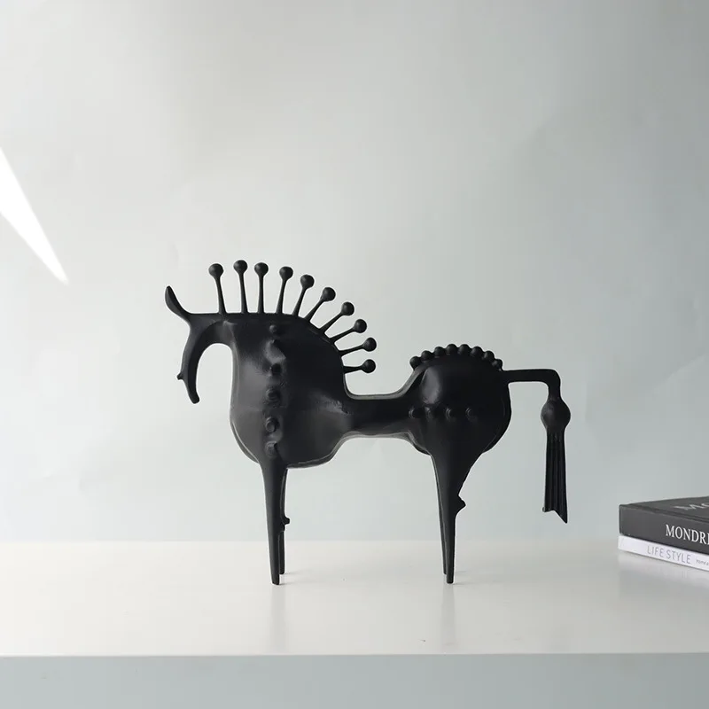 Decor Figurines Abstraction Horseradish Horse Figurine Metal Handicraft Miniatures Artificial Animal Sculpture Home Decoration
