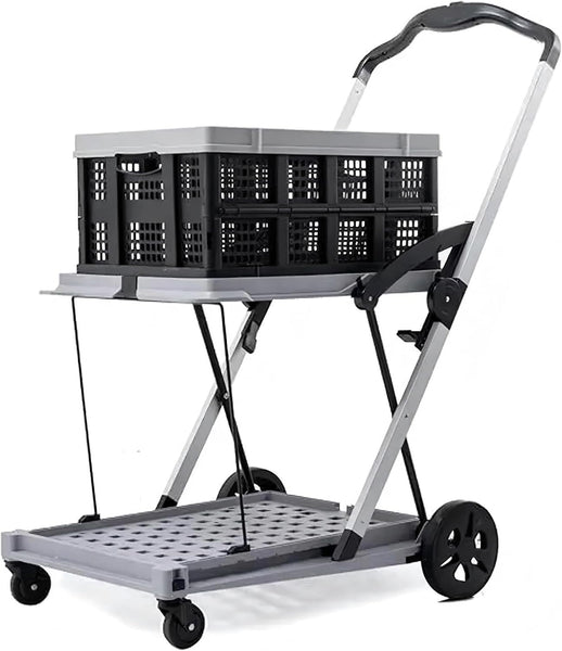 The collapsible shopping cart and the two baskets are both foldable modes, making it easy to carry during transportation.