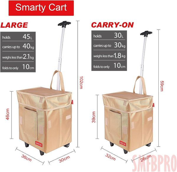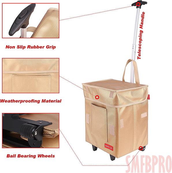 Smfbpro Folding Portable Rolling Crate Handcart,Smart Cart with Telescopic Handle, Collapsible Rolling Utility Basket Shopping for Supermarket Shopping、Teacher Shopping Moving Grocery