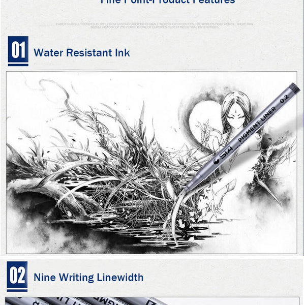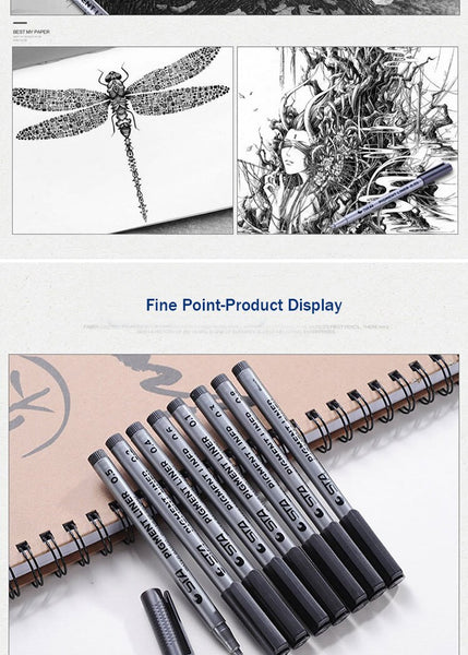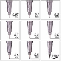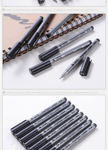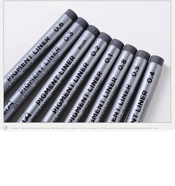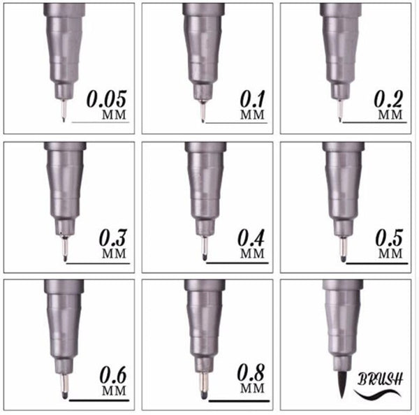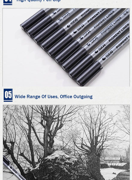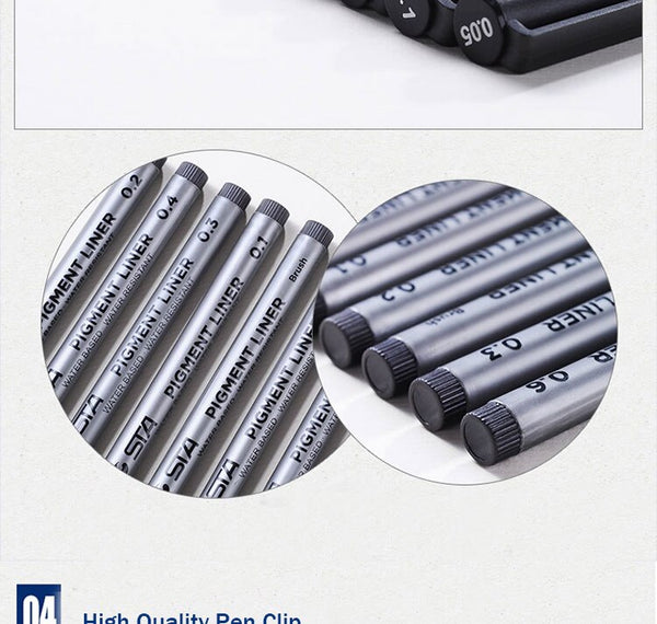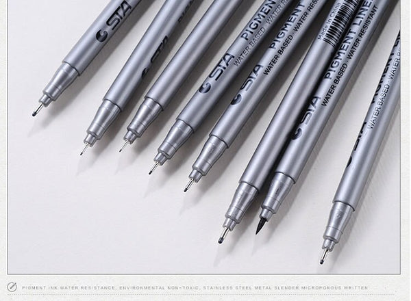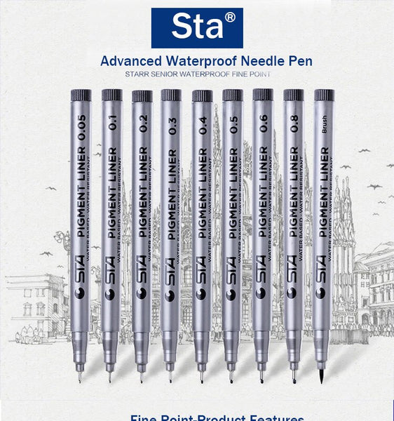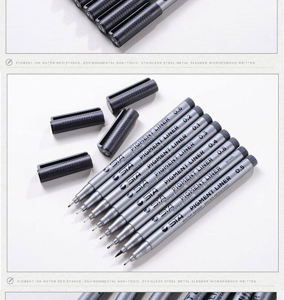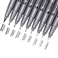 STA 9Pcs/Set Pigma Micron Needle pen Waterproof Fade Proof brush Tip Fine Liner Black Sketch Water Manga Drawing Marker Pen