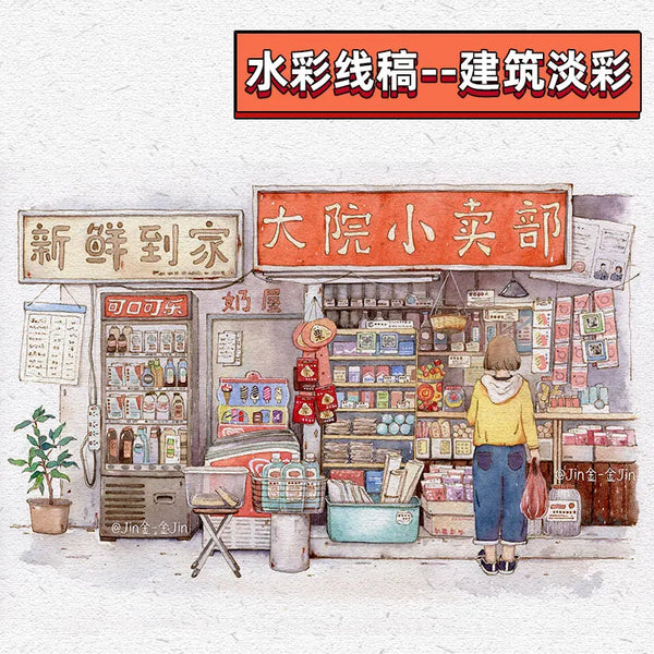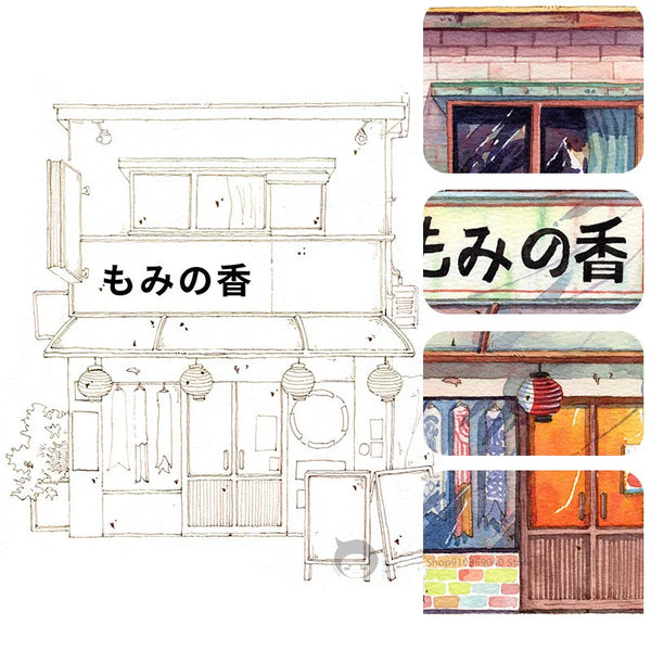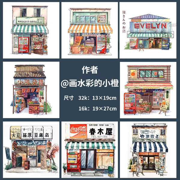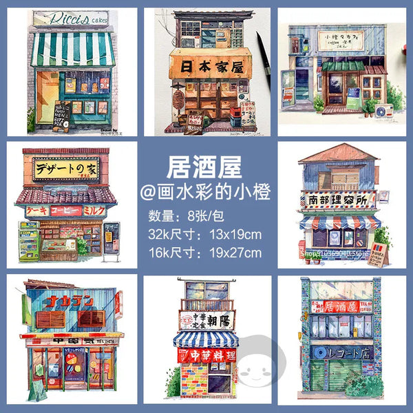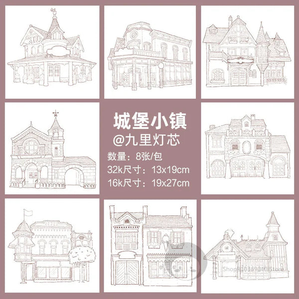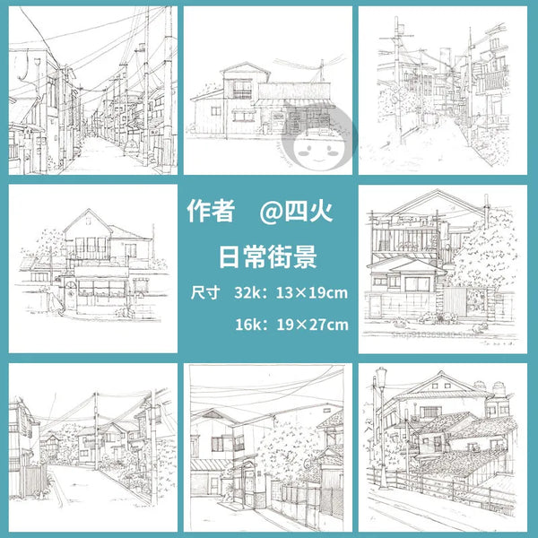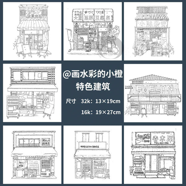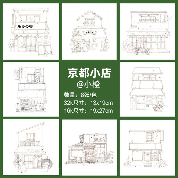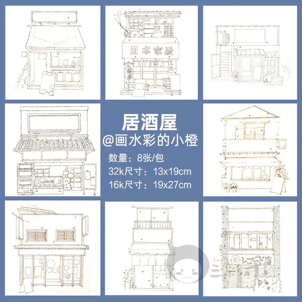 AOOKMIYA 100%Cotton Watercolor Line Manuscript 200gJapanese Architectural Landscape Blank Manuscript Coloring Painting Paper Art Supplies