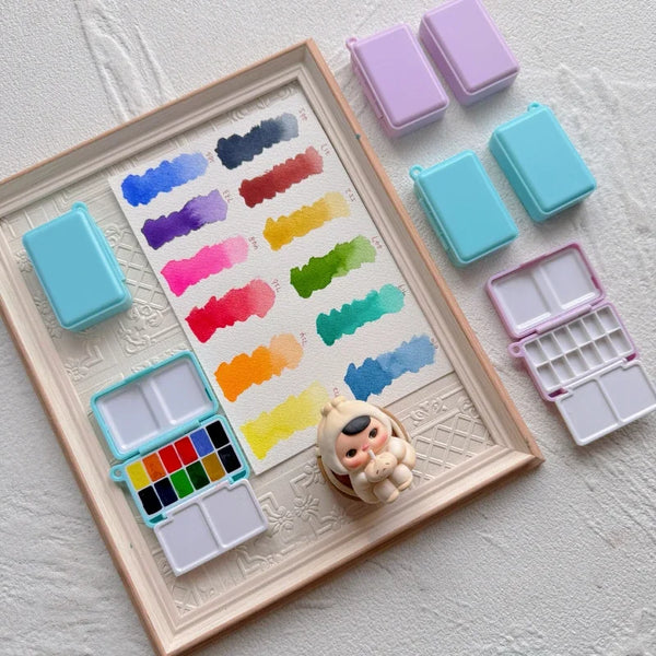 AOOKMIYA Empty Mini Portable Tri-fold Watercolor Paint Box 12 Grid Travel Palette Artist Beginner Professional Painting Art Supplies
