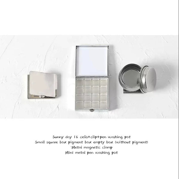 Description: Portable mini paint box, With a metal magnetic clip, the paint box attaches securely to the clip.