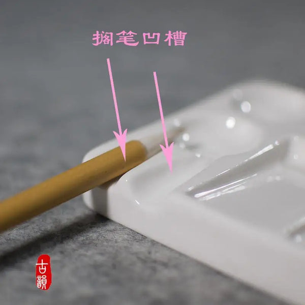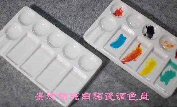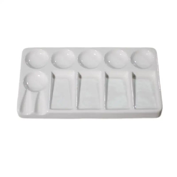 White Ceramic Rectangular Artist Paint Palette for Watercolor Gouache Acrylic Oil Painting Calligraphy, 10 Wells, 18.2*10*1.7cm