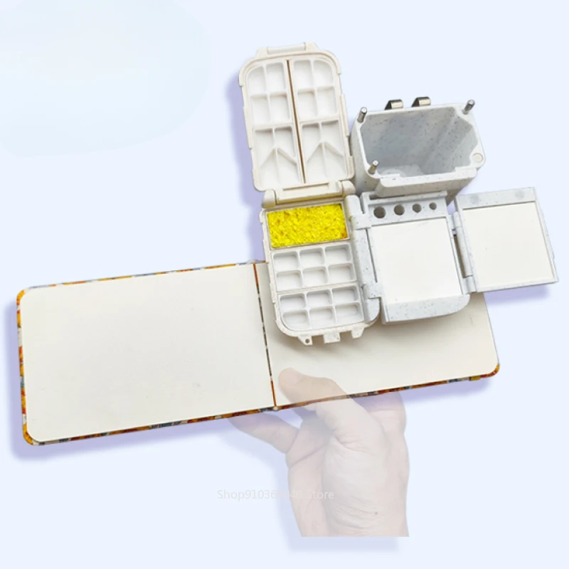AOOKMIYA Portable Watercolor Paint Box 3D Printing Box Folding Palette Washing Bucket Set 34 Grids Artist Travel Painting Art Supplies