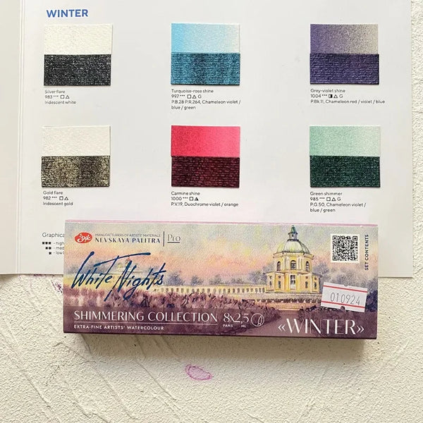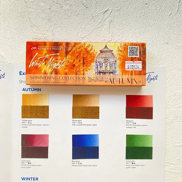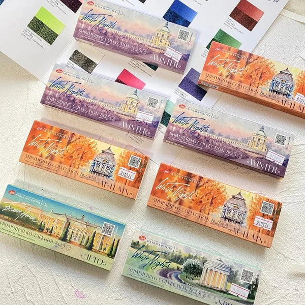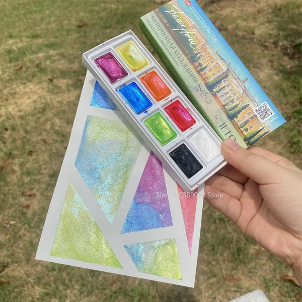 AOOKMIYA Russian White Night New Pearl Watercolor Paint 8-Color Full Block Set Shining Artist Solid Paint Beginner Drawing Art Supplies