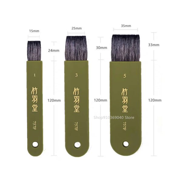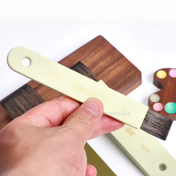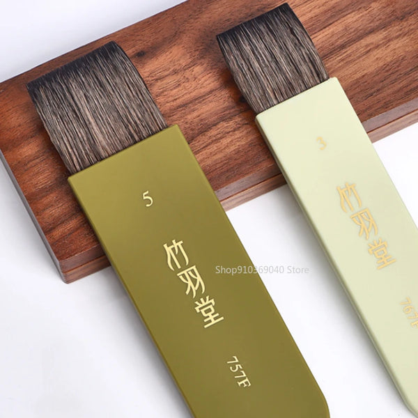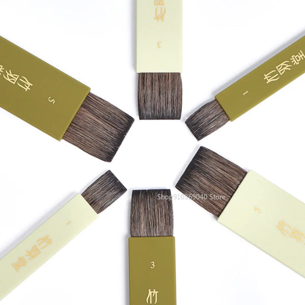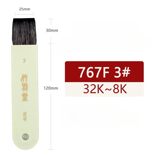 High-quality squirrel hair, mixed with wool and elastic fiber in a golden proportion, has just the right toughness, the hair is tight, smooth, full, and has a large water storage capacity; it is often used for paper mounting, water brushing, color laying, etc.