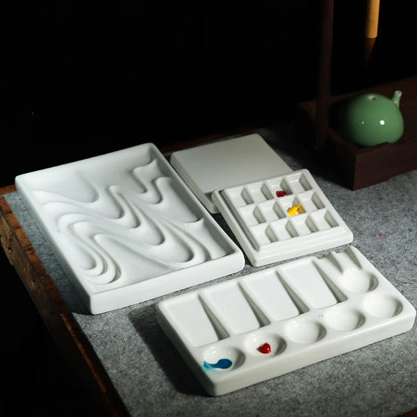 Name: Chinese Painting Palette Style: 4 styles are available. Main material: ceramic Features: three styles / ceramic material / unique shape