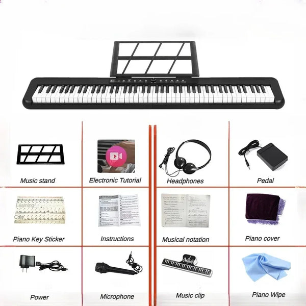 ● 80 songs sample pieces, 200 kinds of rhythm and timbre play a variety of music combinations on the keyboard