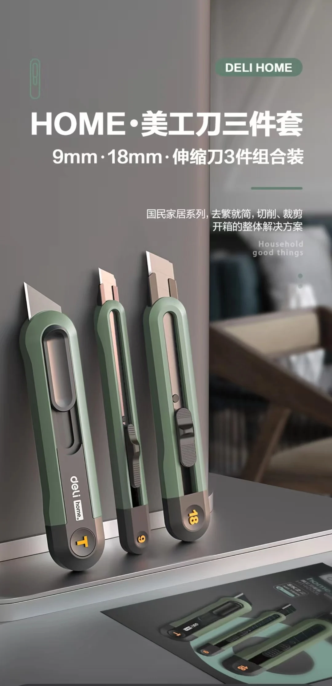 Deli Utility Knife Blade Messer Facas Art Carving Box Cutter School Suplies Cut Tools Wallpaper Stationery Express Delivery Safe