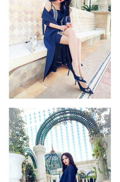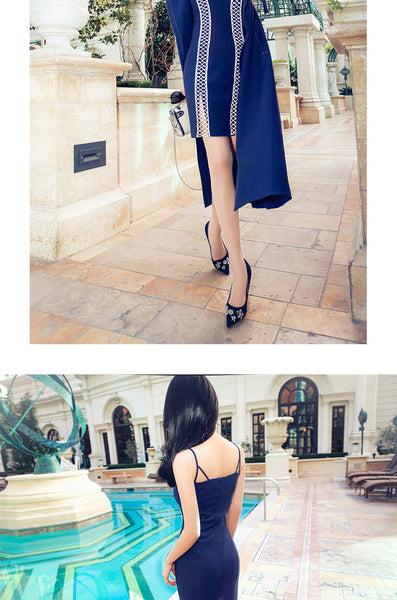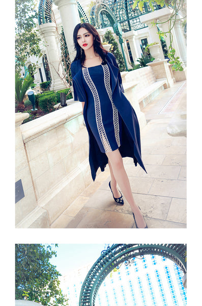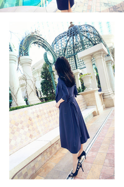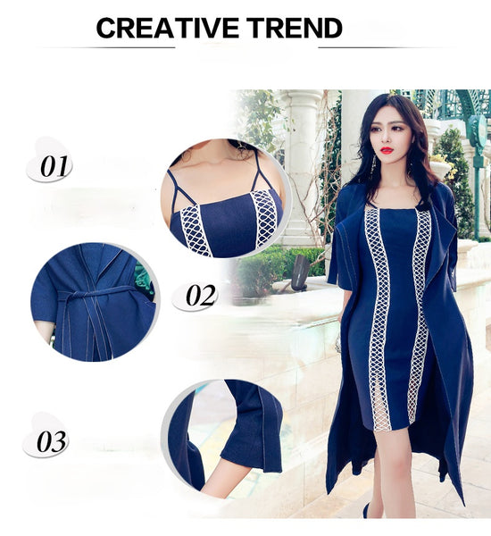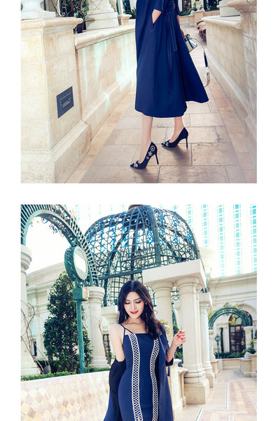 Aookdress spring new Korean temperament two piece suit with hip strap dress medium length windbreaker coat female