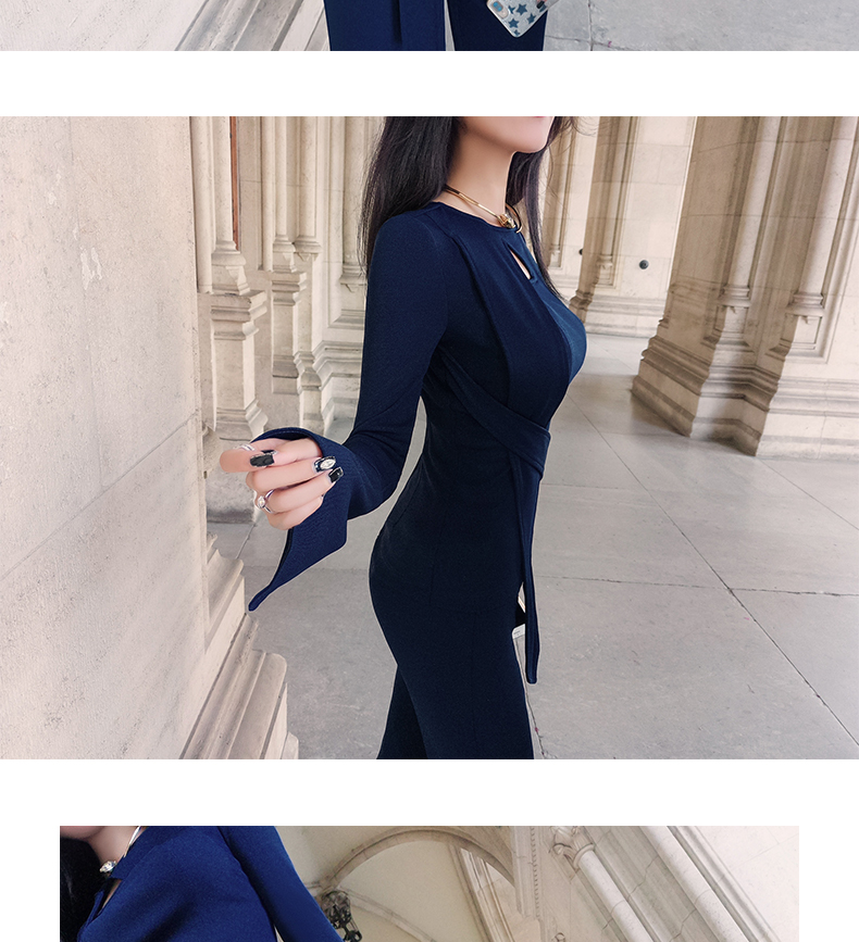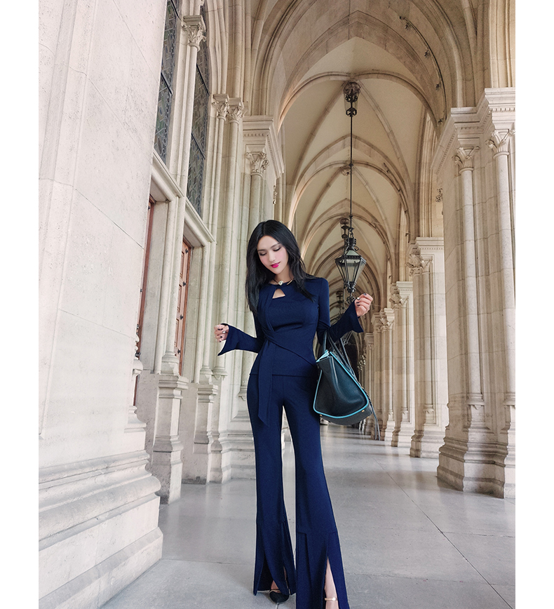 undefinedFashion temperament split wide leg trumpet trousers bottoming jacket set