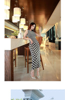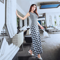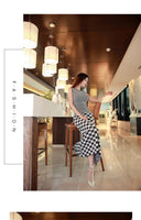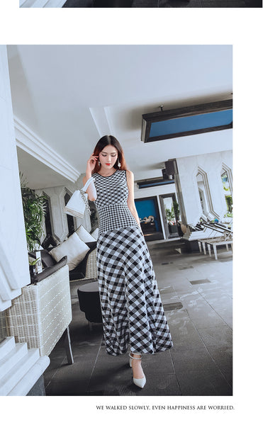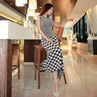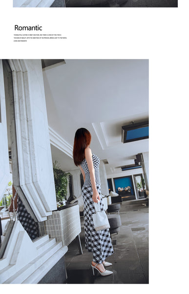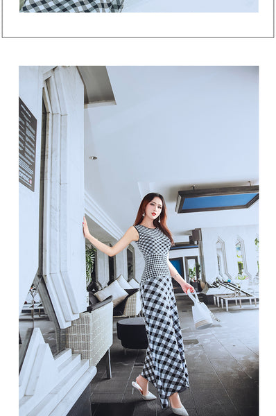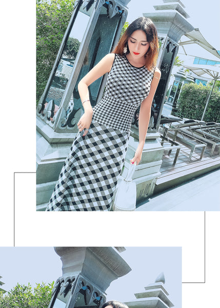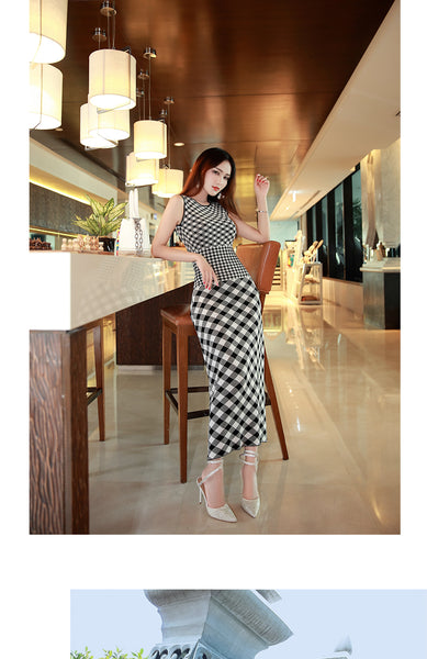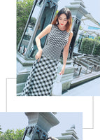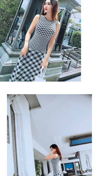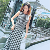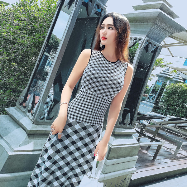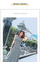 Aookdress women's summer new sleeveless dress mid length waist length slim sexy Plaid knee length skirt