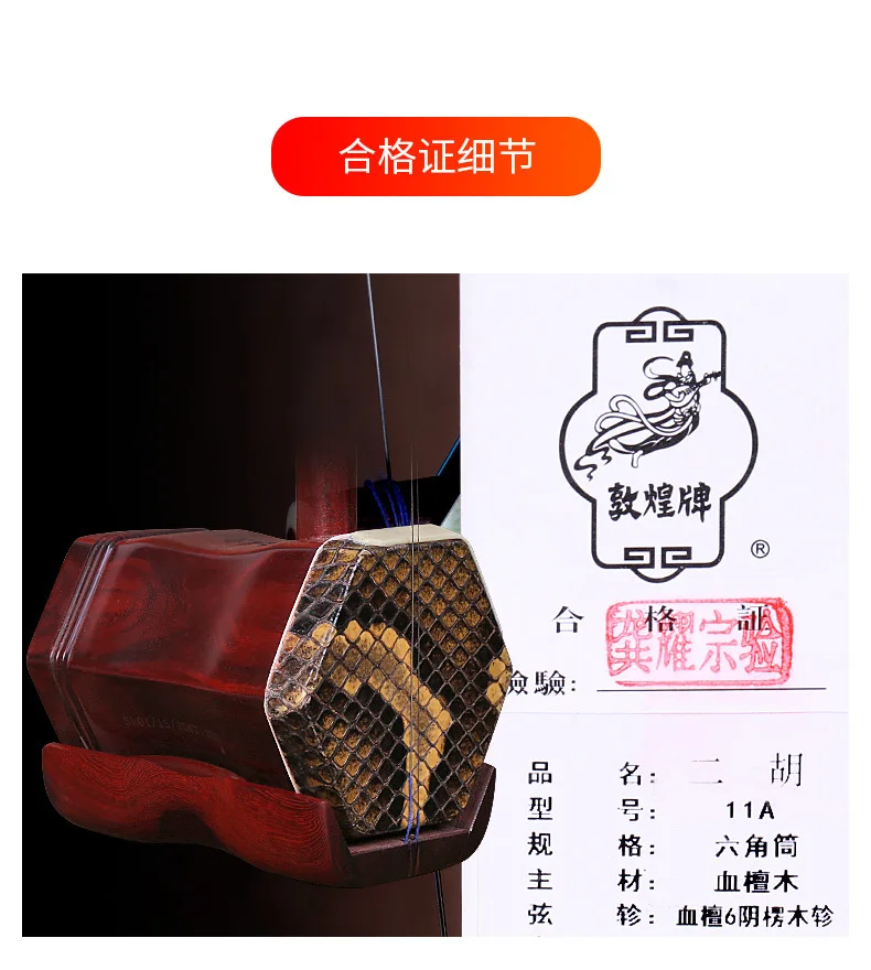 Dunhuang Professional Erhu 11A Blood Sandalwood Hu Qin Teaching Playing Liuyin Lengmu Zhen Chinese National Musical Instrument