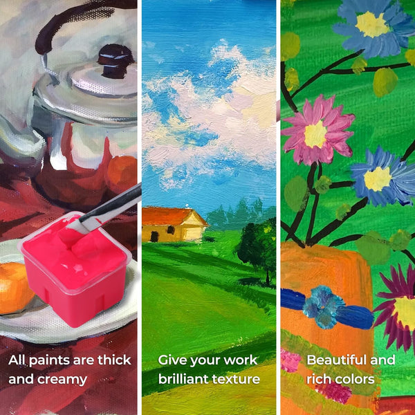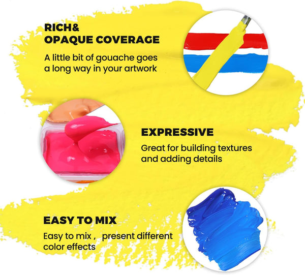 - NEW DESIGN: Upgraded unique jelly cup design with an excellent sealing lid will keep our gouache paints wet and creamy for better artist painting, portable jelly cup size perfect for outdoor painting.