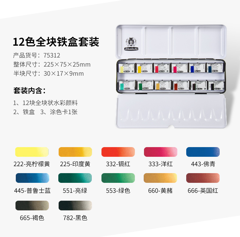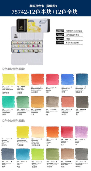 German Schmincke Academy solid watercolor paint 12/24/48 color iron box set art supplies aquarelle tools