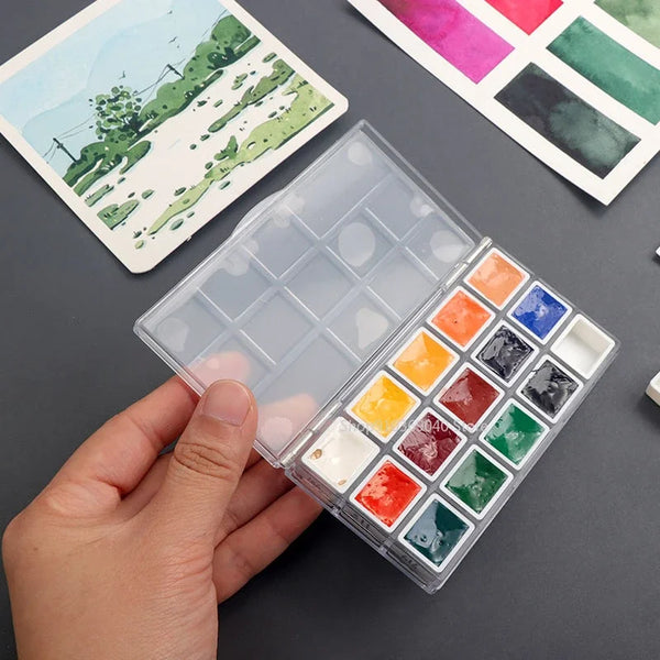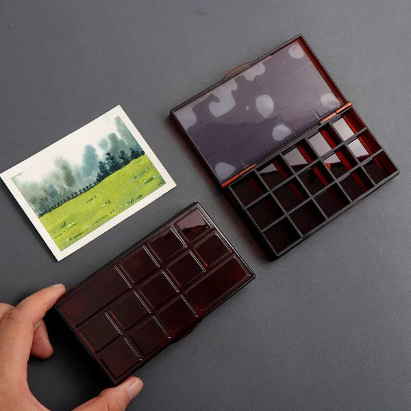 Product name: 15/24 grid watercolor paint moisturizing box Material: plastic Color: Brown/Transparent Size: 11*6*1.5cm