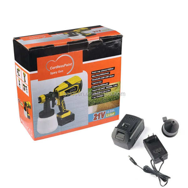 TOLHIT 21V 2.0A Lithium Battery Powered Electric Airless Latex Painting Sprayer Machine Portable Cordless Paint Spray Gun for home, wall, fence, garden painting, cleaning, disinfecting etc and more usage.