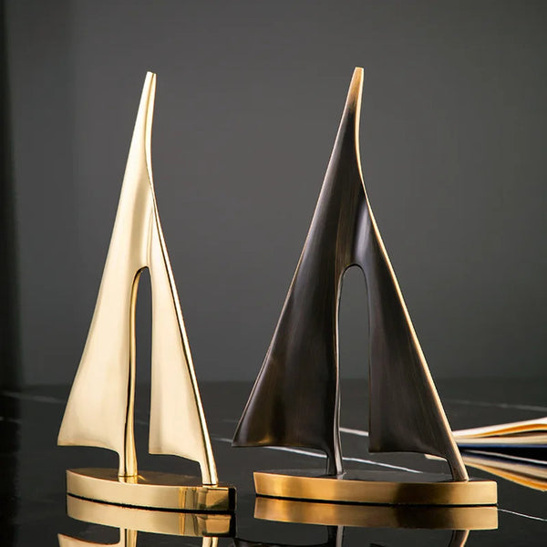 Product Title: Smooth Sailing Sailboat Metal Crafts Ornaments Copper Golden Hollow Ship Abstract Geometric Sailboat Sculpture Home Furnishings