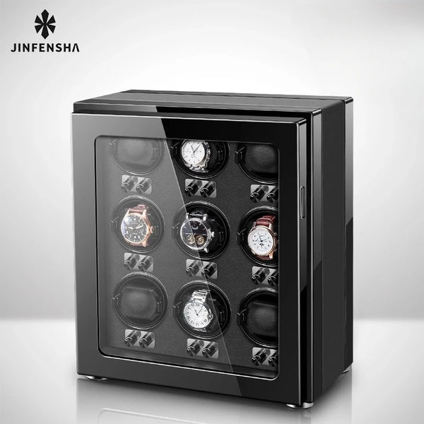 Wooden Watch Winder Box Storage Automatic Rotating Watch Box 9 Slots Led Shaker Luxury Inner Cortex Organizer Tray Holiday Gifts