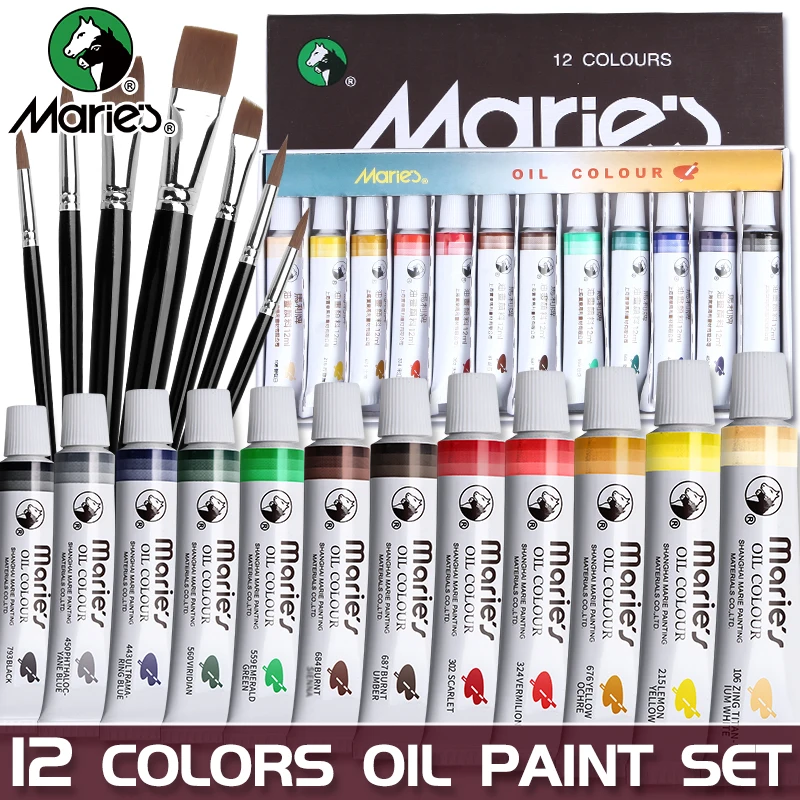 AOOKMIYA 19 pcs Marie's Oil Paint Kit,12 Colors Oil-Based Pigment & 7pcs Brushes,12ml/0.42oz Tubes,Vibrant Oil Painting Set for Crafters