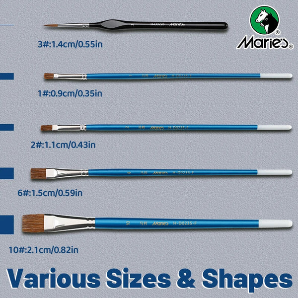 AOOKMIYA 5pcs Marie's Paint Brushes Set with Flat and Details with Wolf Hair for Acrylic,Watercolor,Crafts,Models,Rocks,Canvas,Gouache