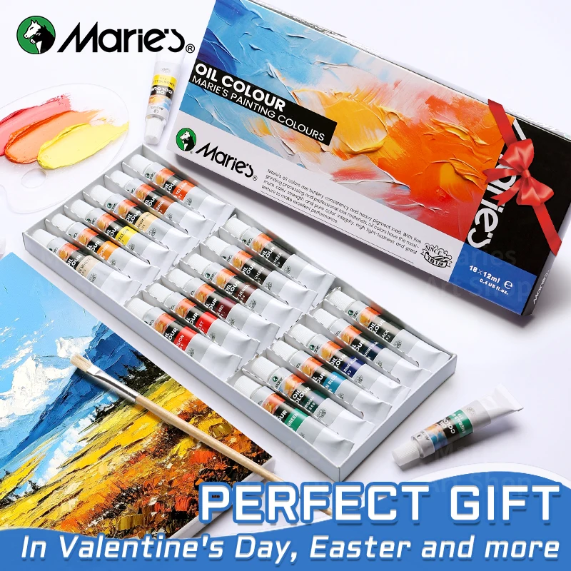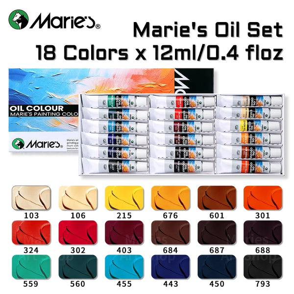 AOOKMIYA Marie's Artists' Oil Paint Set,12/18 Vibrant Colors,Rich Pigments Oil Based Paint Kit of 12ml/0.4floz Tube for Canvas,Paper