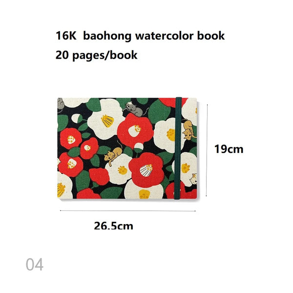 Baohong Handmade Watercolor book 100% Cotton 300g Travel Notebook 32k 16k 20 Pages medium Portable Beginner's Drawing Sketchbook