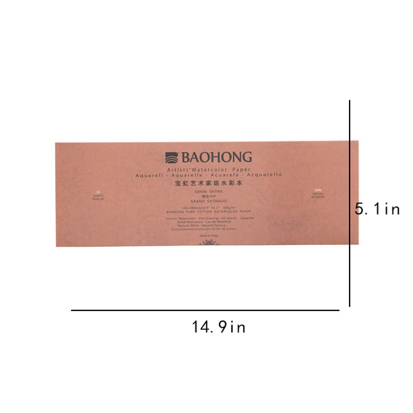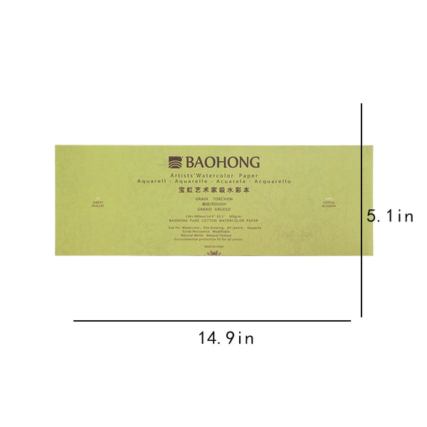 BaoHong Artist Watercolor Paper Pad Cotton 100% Painting Paper Gouache Acrylic, Fountain pen Inkjet Pastel charcoal 130*380mm