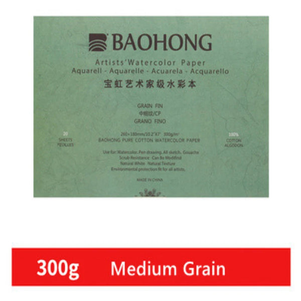 Baohong 100% Cotton Artist Watercolor Paper 300g 20 sheets Professional Water Color Sketchbook Drawing Painting Pad