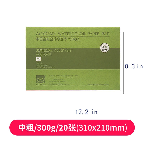 Baohong Watercolor Paper Pad 300g Academy Cotton 100% Color Lead Sketch Four Side Sealing Glue 20 Sheets/Copy 210mm*310mm