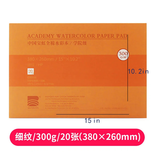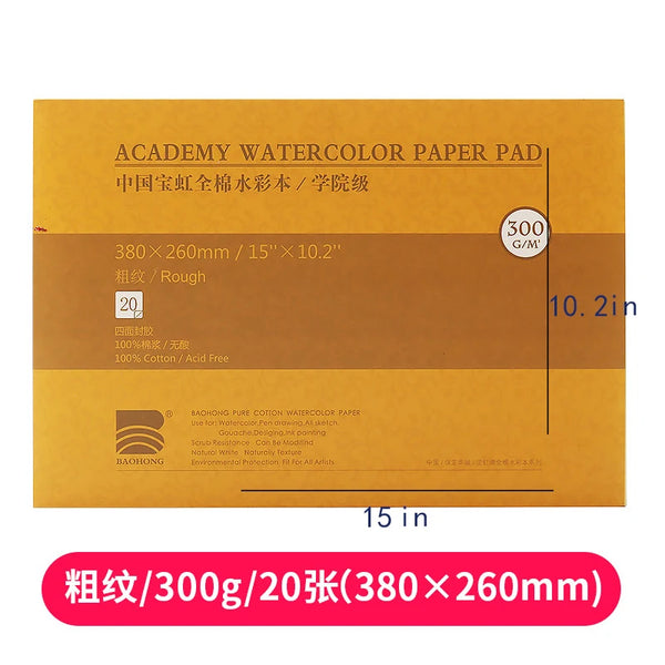 Baohong Watercolor Paper Pad 300g Academy Cotton 100% Color Lead Sketch Four Side Sealing Glue 20 Sheets/Copy 380*260 8k