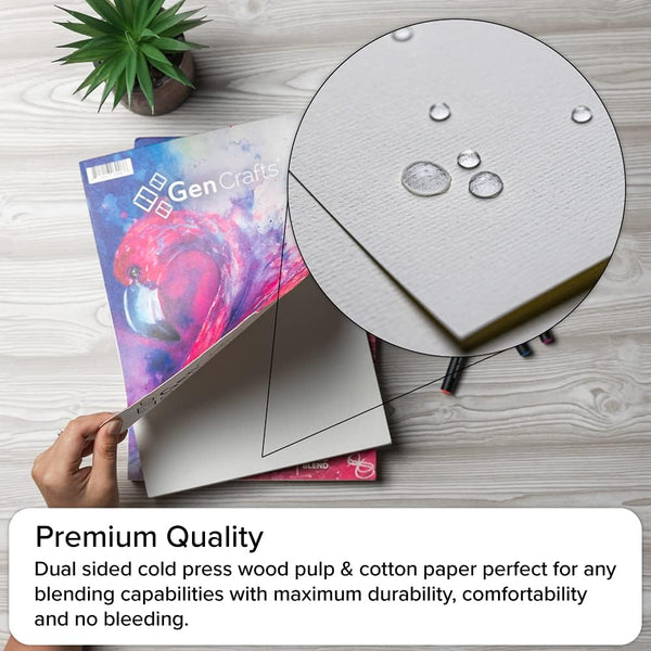 GenCrafts Watercolor Paper Pad 2 Pack - A4 8.3x11.7" - 60 Sheets Total (140lb/ 300gsm) - Cold Press Acid Free Art Sketchbook Pad for Painting & Drawing, Wet, Mixed Media