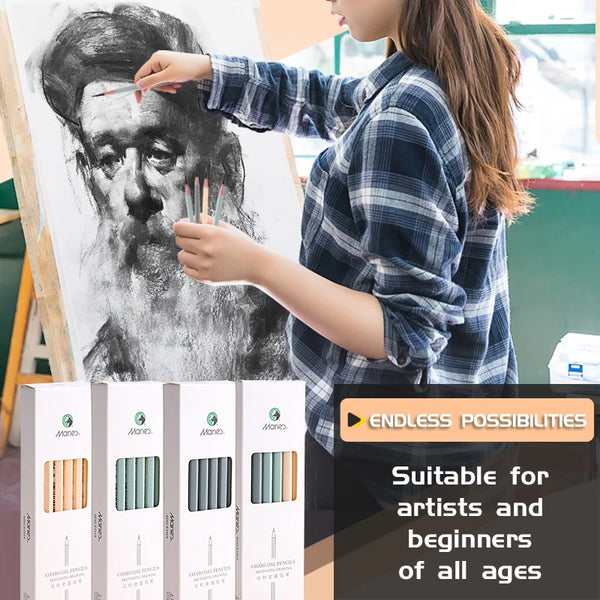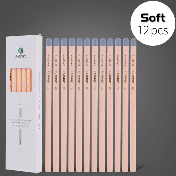 AOOKMIYA 6/12pcs Marie's Sketch Charcoal Pencils,Soft/Medium/Hard Lead with Colored Wooden Barrel for Drawing,Sketching,Shading & Blendin
