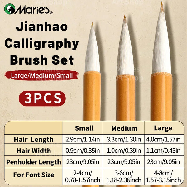 AOOKMIYA Marie's 3 pcs Jianhao Chinese Calligraphy Brush Set, Traditional Writing Watercolor Brush Ink Pen Kit for Small Regular Script,