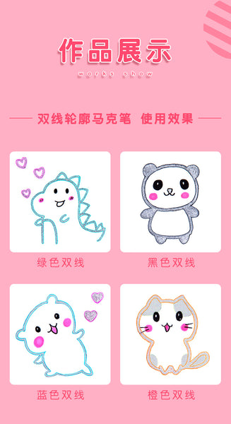 Creative three-dimensional two-color pen set two-line outline pen flashing note number pen color painting hand account pen