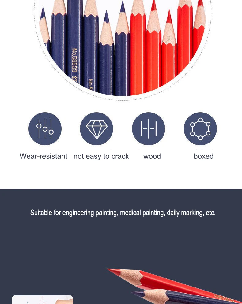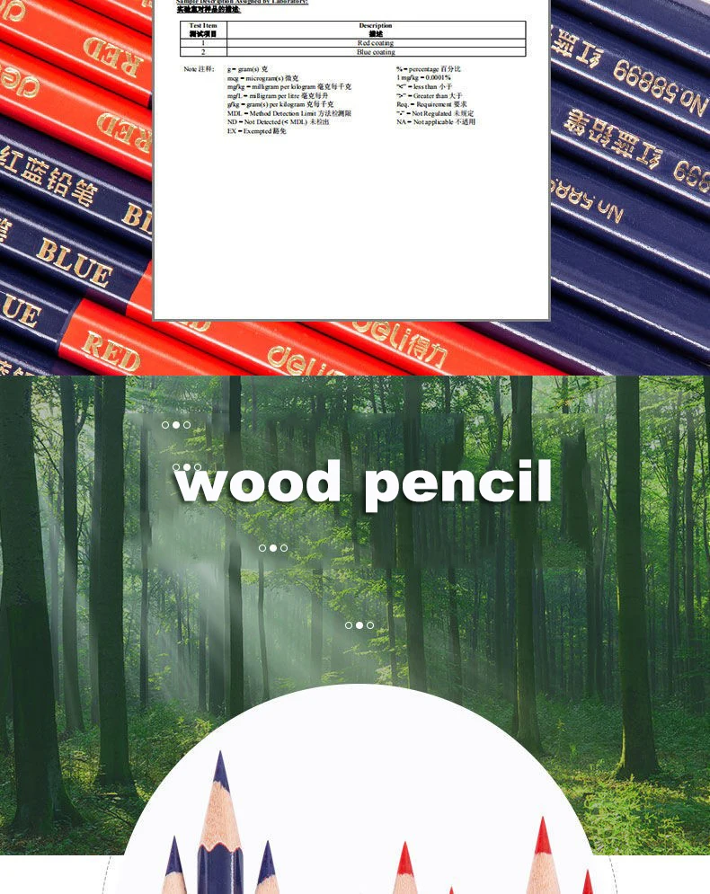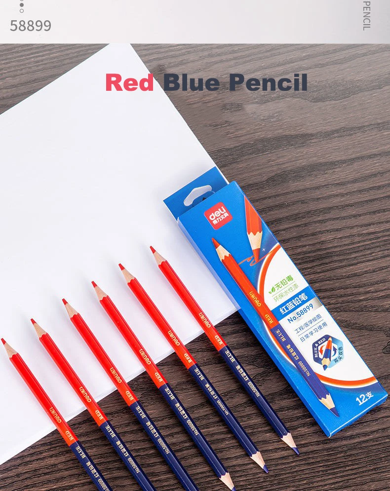 Deli Red Blue Pencil HB Dual Color Pen for Kid's Adult Design Drawing Industrial Engineering Marking Wooden Pencil Stationery