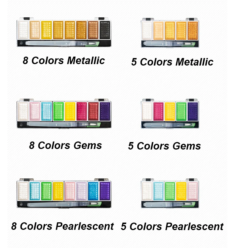 Materiais de arte para estudantes, pintura aquarela sólida de 5/8 cores superior, metal/pedra/cor perolada, materiais para arte