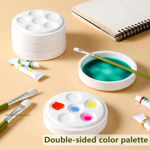 Paleta de lavagem cerâmica redonda três-grade porcelana branca placa de lavagem jingdezhen porcelana pintura paleta pintura arte suprimentos