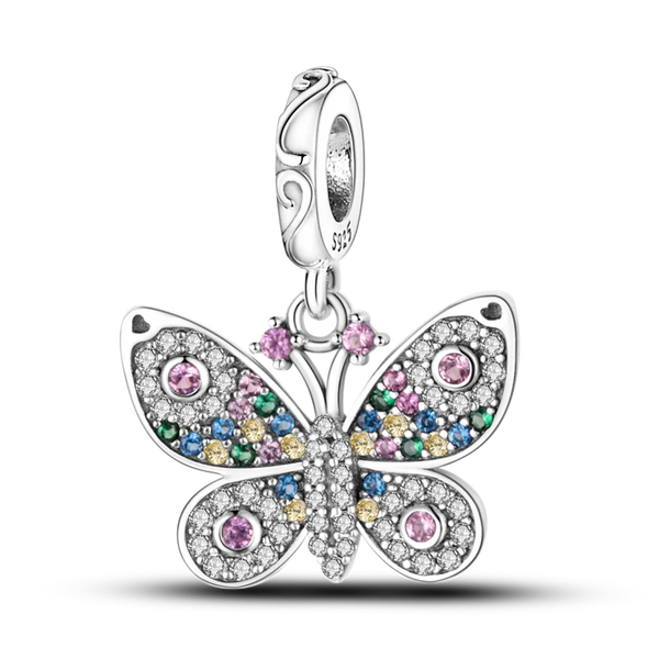 2025 Hot Sale Charms Bead 925 Sterling Silver Pink Butterfly Luminous Firefly Dangle Fit Bangle Bracelet Necklace DIY Jewelry