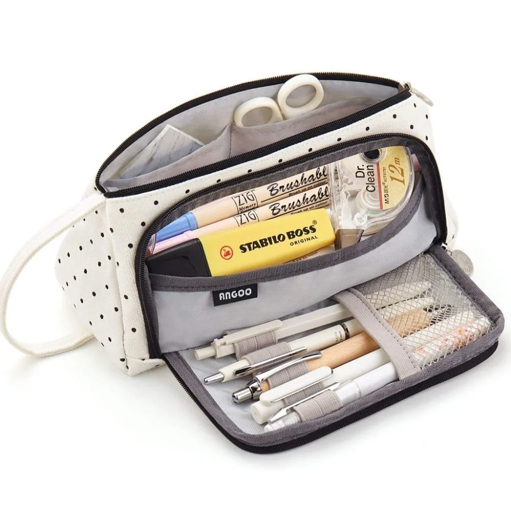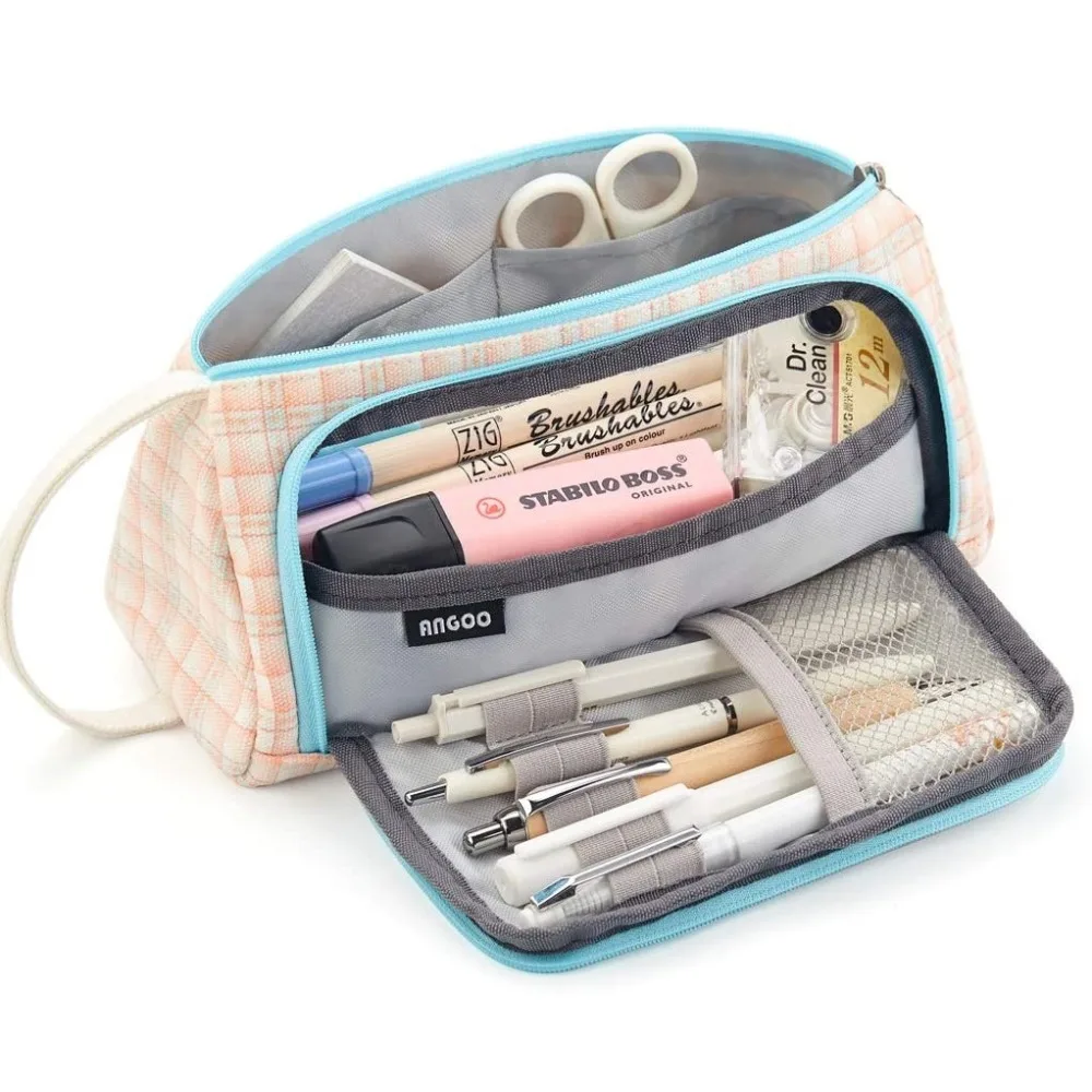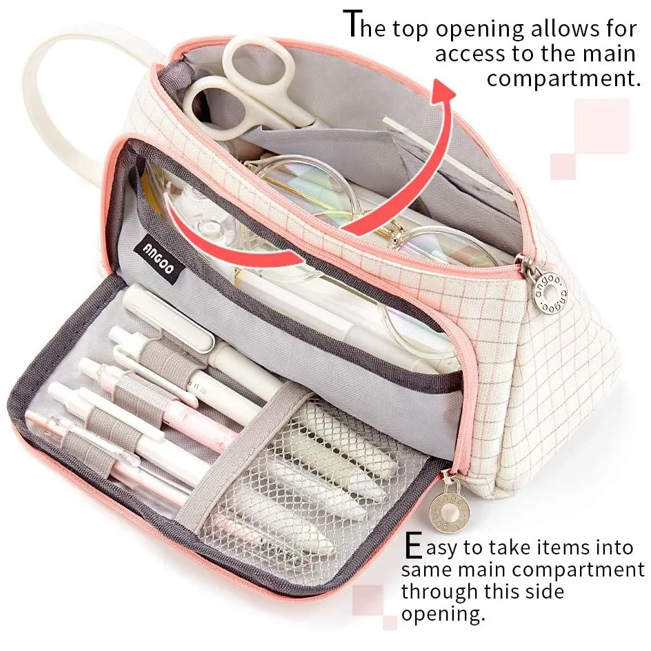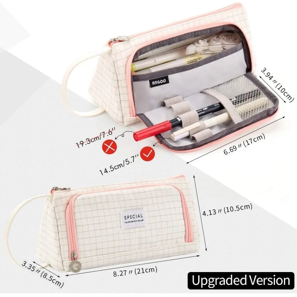 Angoo [Special] Grid Pen Pencil Case, Multi Slot Plaid Storage Bag, Big Pouch Organizer for Stationery Cosmetic Student A6443