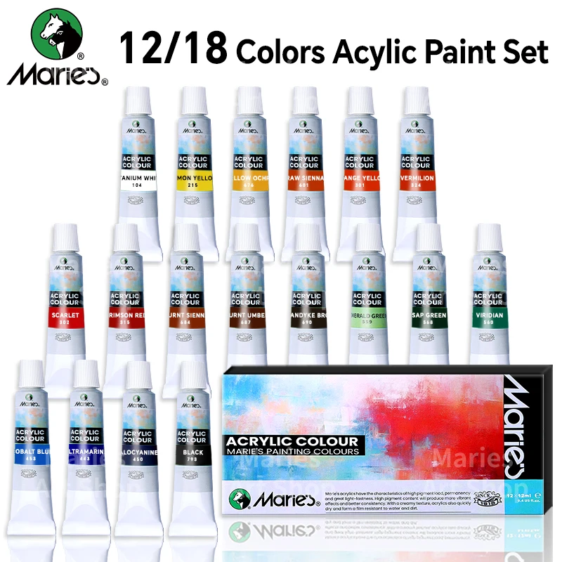 AOOKMIYA Marie's Acrylic Paint Set,12/18 Colors x 0.41oz/12 ml Tubes,Professional on Rocks,Canvas,Wood,Crafts,Paper,Wood,Rock for All-age