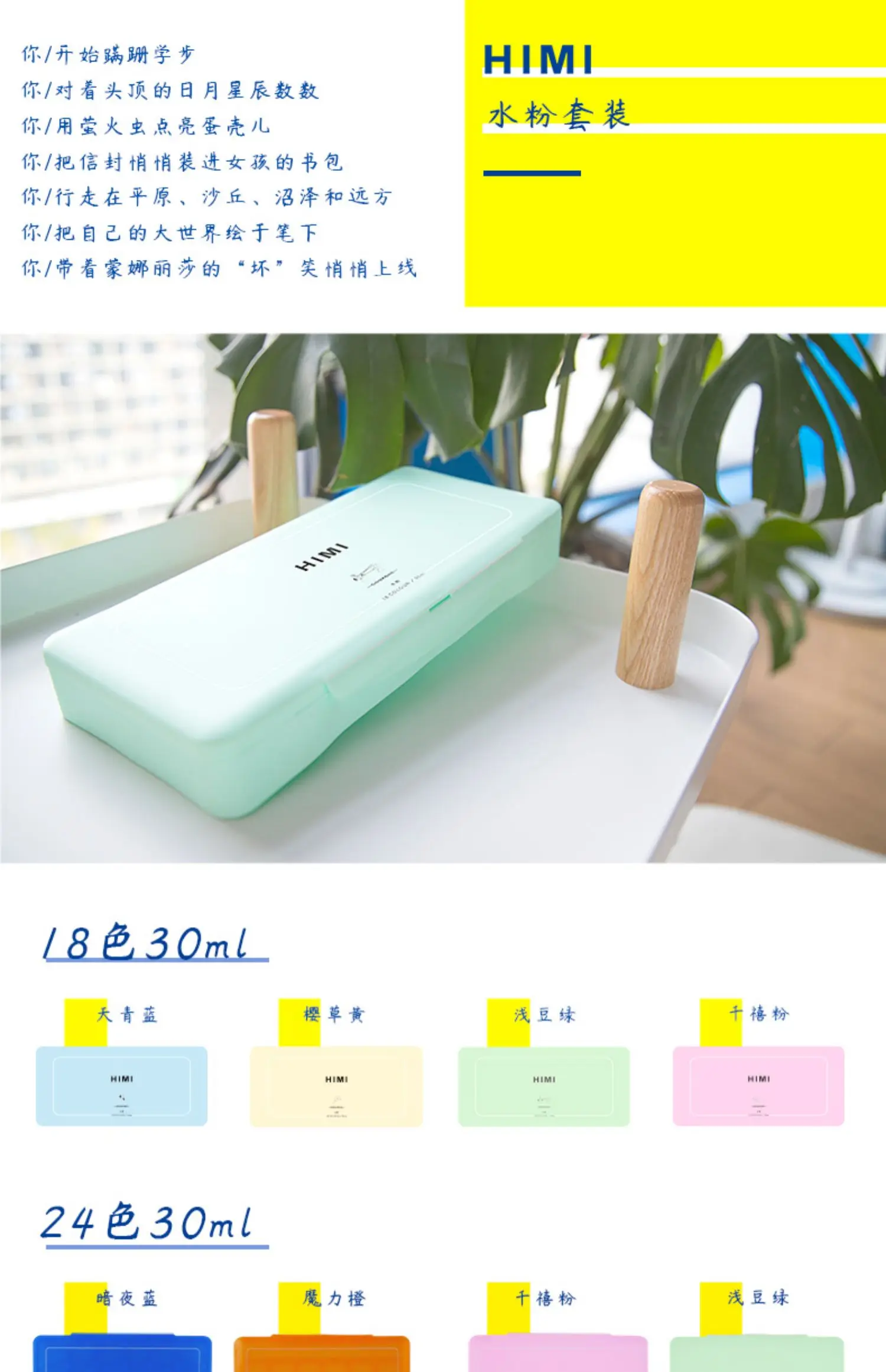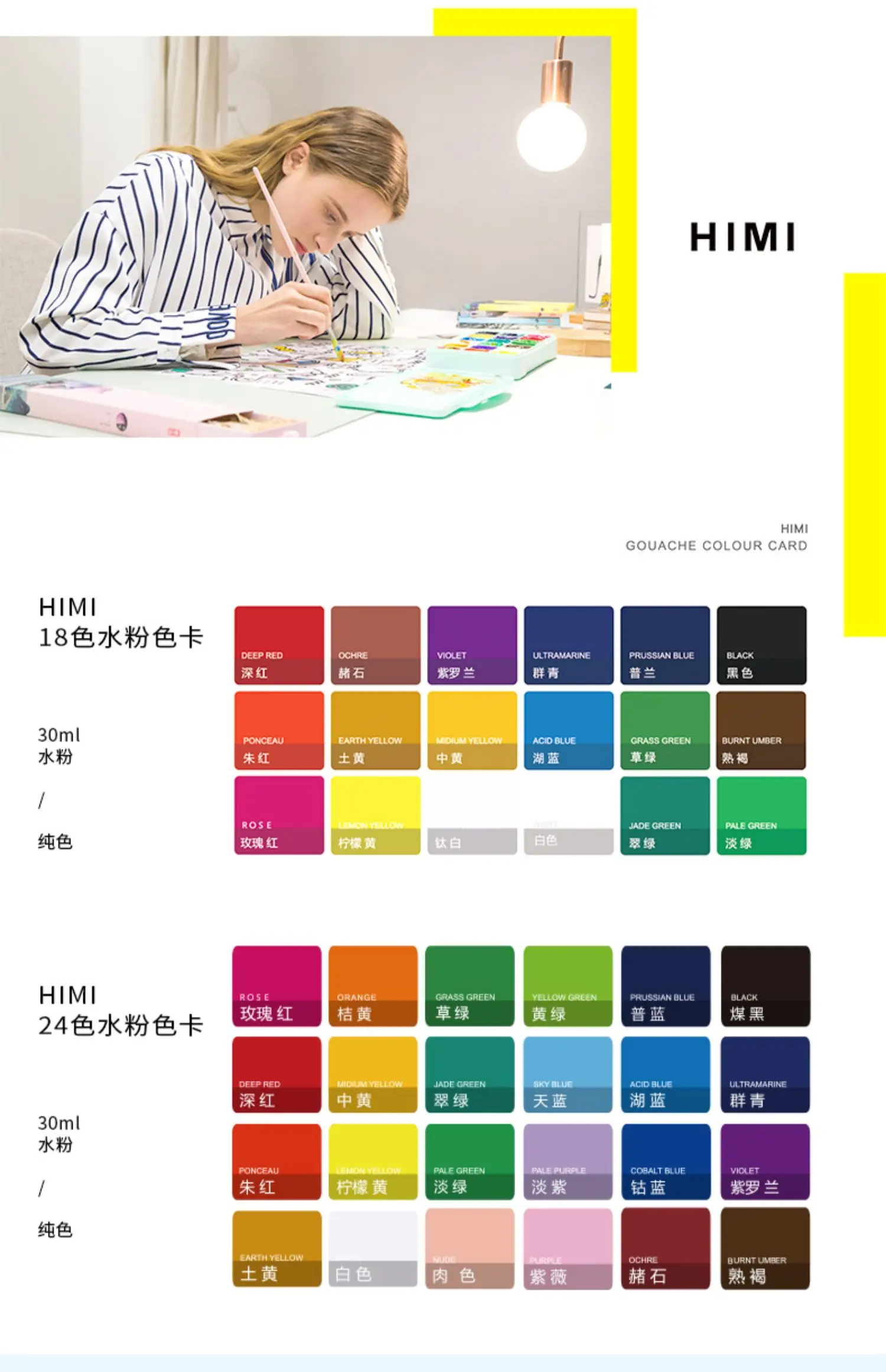 HIMI Gouache Paints Set 18/24colors 30ml Jelly Cup Watercolor Paint Safety Non-Toxic Gouache Artist With Palette For Biginners